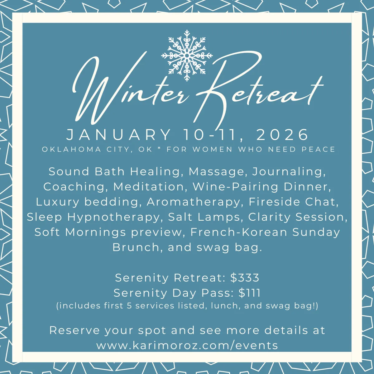 A cozy, intimate retreat packed full of peaceful, soft vibes and post-holiday pampering!